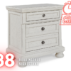 - Antiqued white finish with grain texture