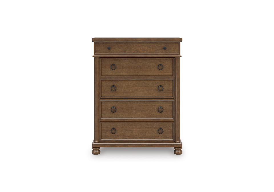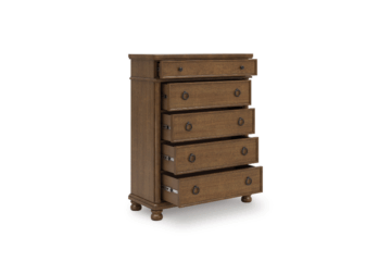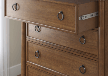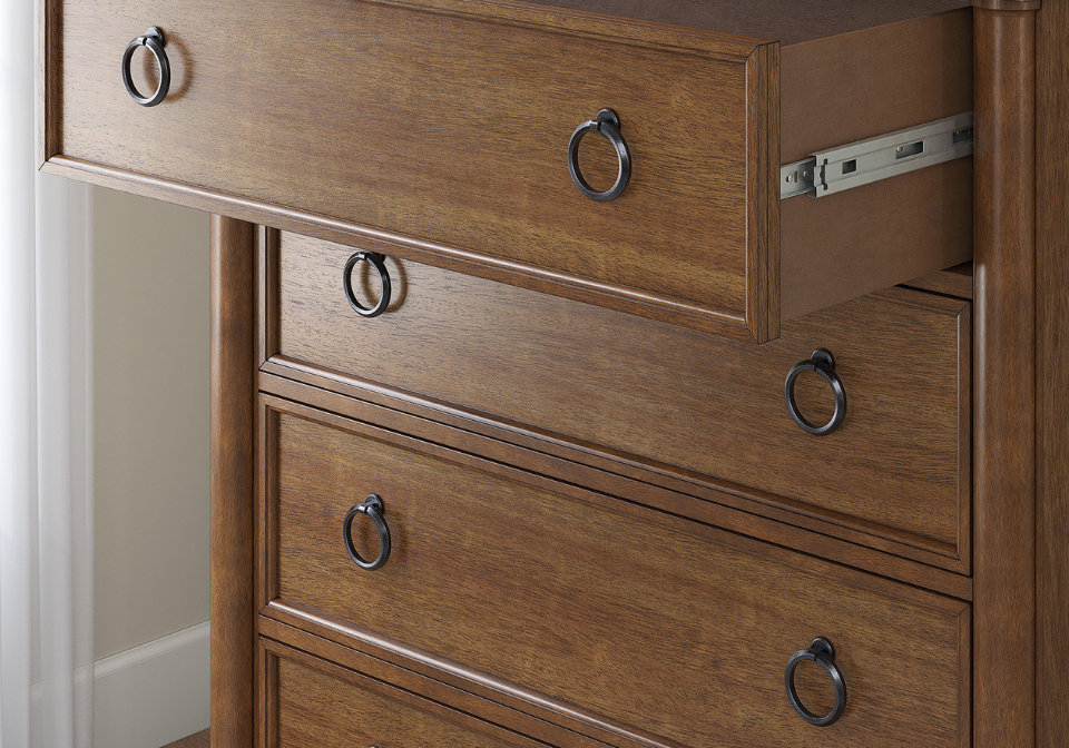- 5 smooth-gliding drawers with fully finished interiors, French/English dovetail construction and heavy-duty ball-bearing side glides