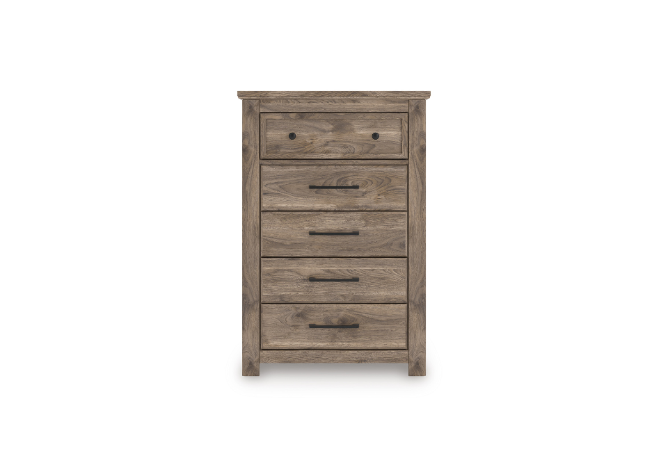 - Drawer interiors are lined with a faux linen laminate for a clean, finished look