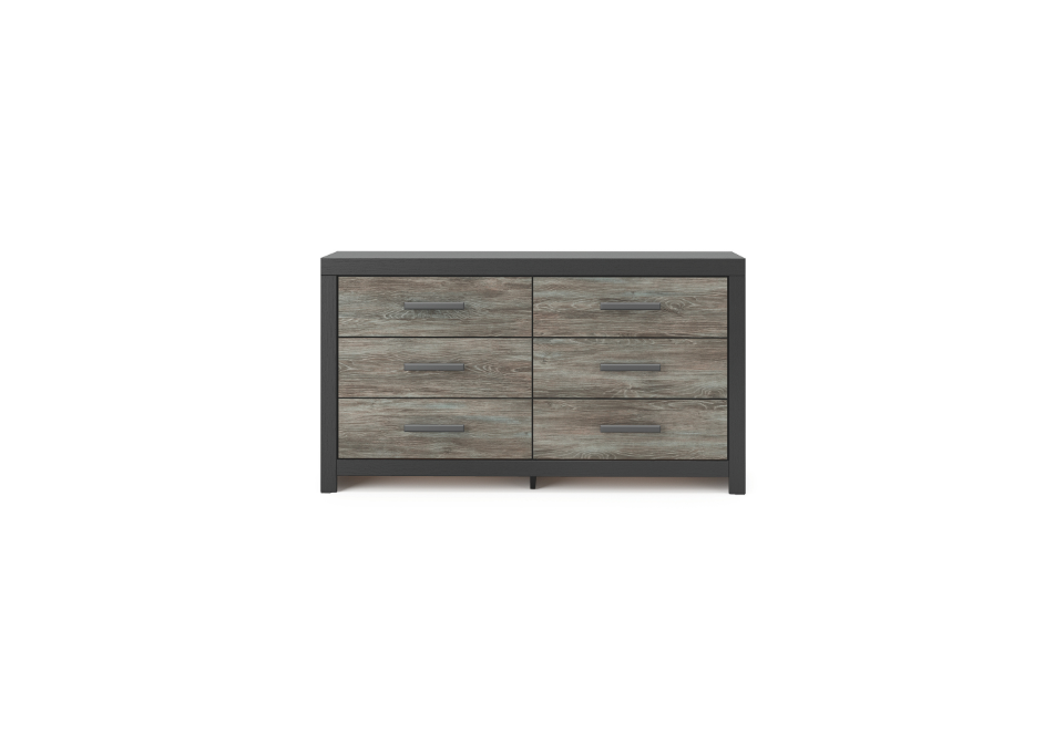 - Two-tone finish (warm gray finish and matte black finish with replicated oak grain)