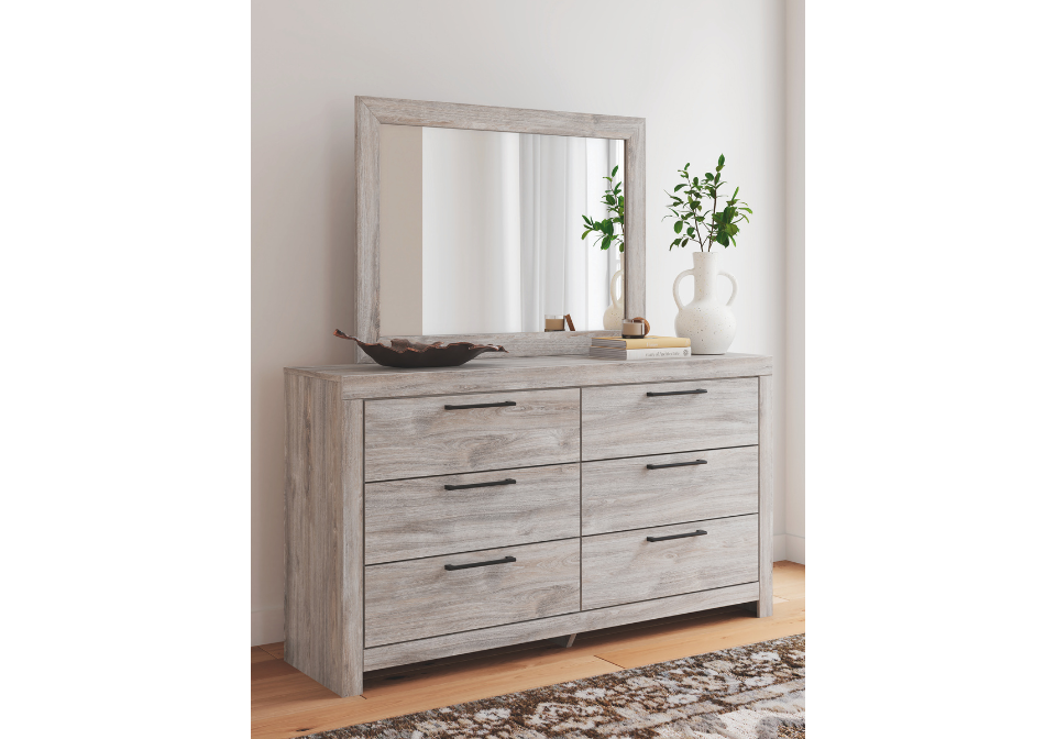 - Mirror attaches to back of dresser; can also be mounted on wall vertically or horizontally