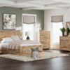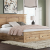 Looking to create a bedroom that feels airy and beautifully put together? This casually comfy king panel storage bed is your perfect solution. Its clean lines, replicated oak grain and on-trend natural finish exude a charming cottage-inspired feel that brightens your restful retreat. Spacious drawers with dark bronze-tone knobs stow away clothes and more. Now there’s a fresh take on country living we can get behind.