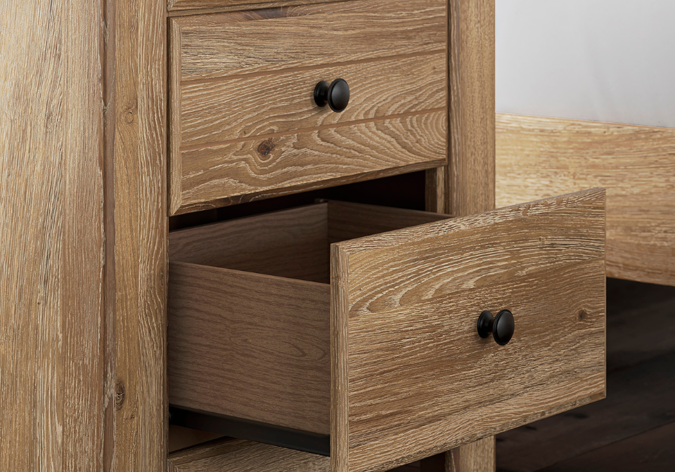 - Made with engineered wood (MDF/particleboard/plywood) and decorative laminate for the right balance of affordability and durability