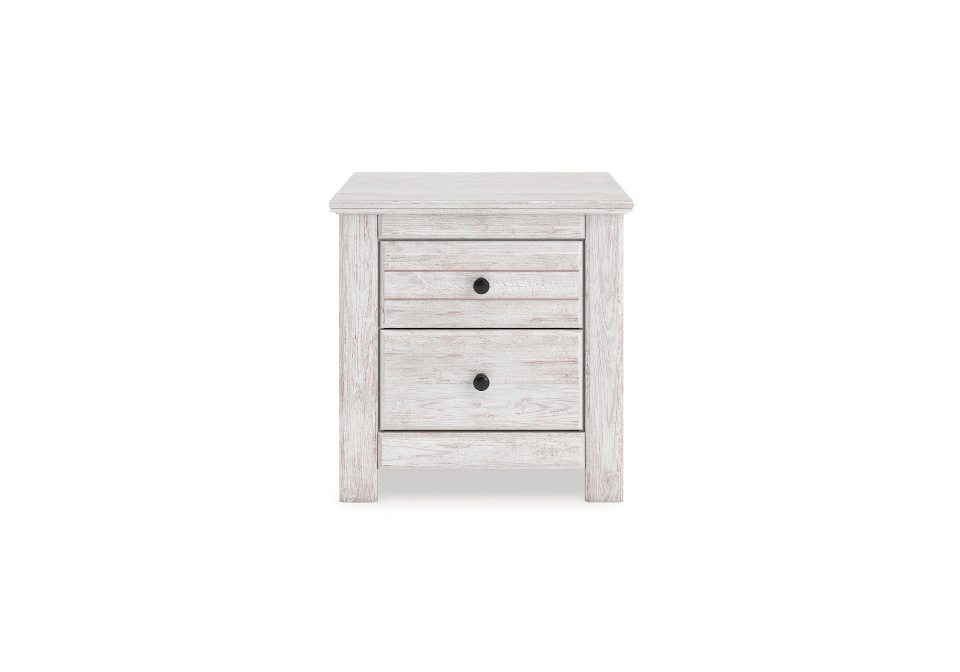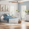 - Bed has 4 smooth-gliding storage drawers