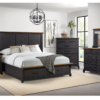 - Includes king bed, mirror, dresser, chest, and nightstand.