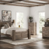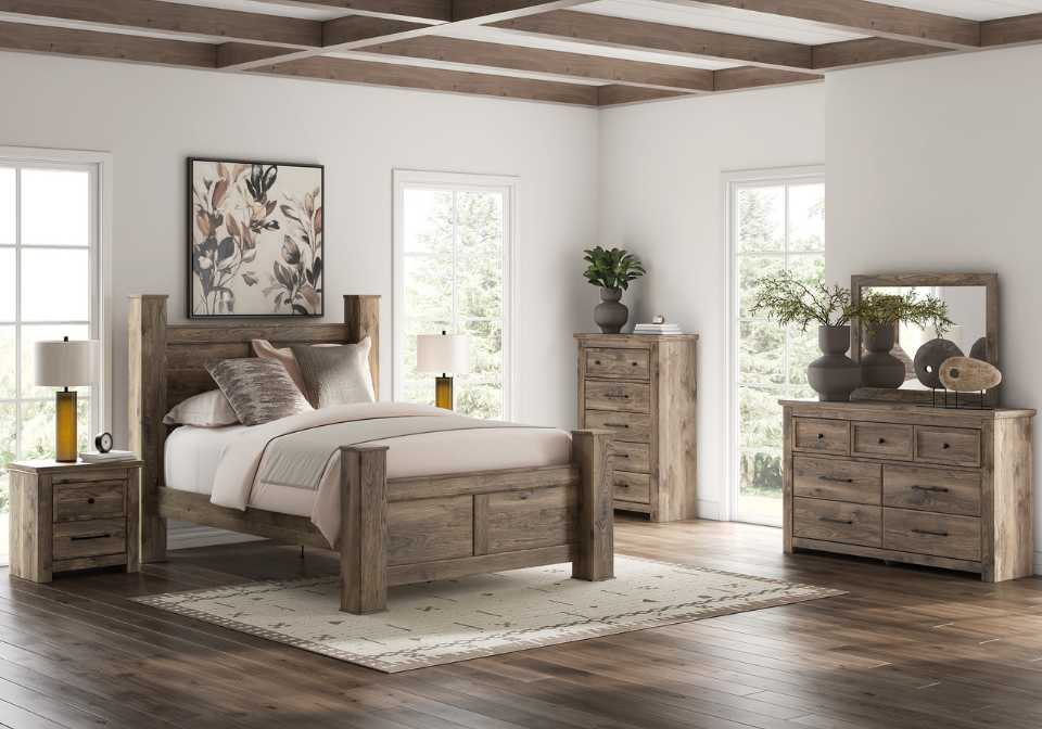 - Includes king bed, dresser, mirror, chest and nightstand.