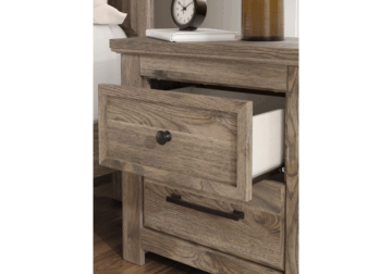 - Hardware with dark bronze-tone finish