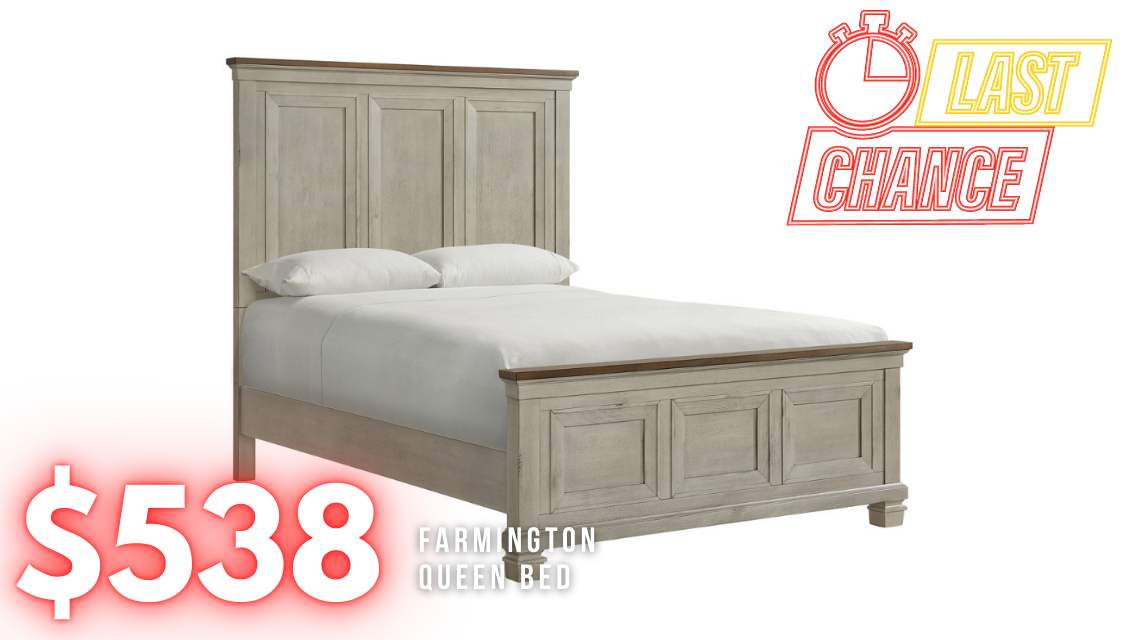 Presenting the Farmington Queen Panel Bed from the Farmington Bedroom Collection by Elements Furniture. Crafted with quality hardwood solids and veneers, this collection showcases a captivating two-tone design in medium brown and washed stone finishes. It adds a rustic yet refined touch to your bedroom decor, enhancing the charm and character of your living space.