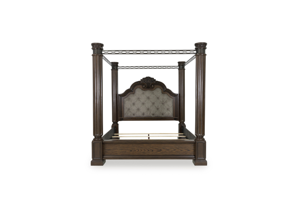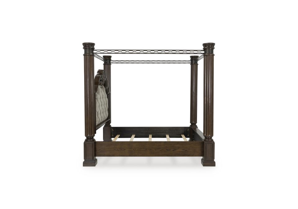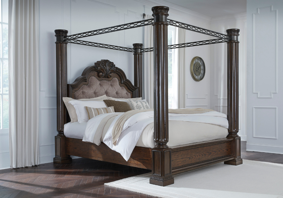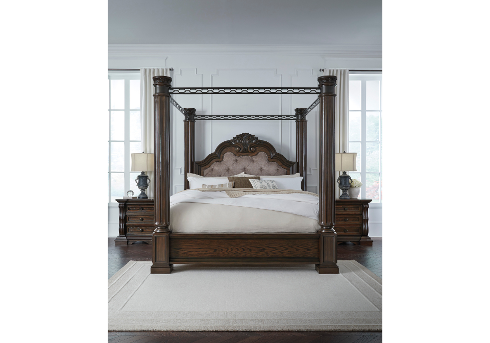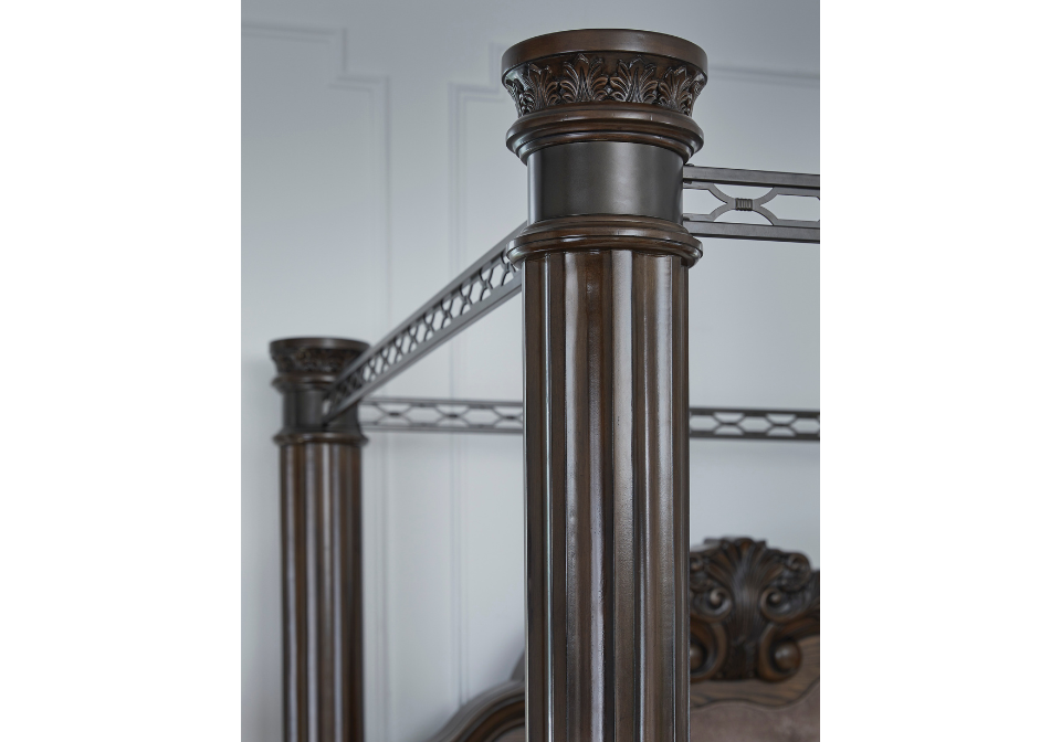 Dreams of lavish, luxurious living are within reach with this queen canopy bed. Recalling a classic sense of refinement, its grand mansion-style posts make a beautifully bold statement. Ornate sculptural details on the headboard and posts eloquently add an air of opulence from head to toe. The look is timeless. The feel? Right at home.