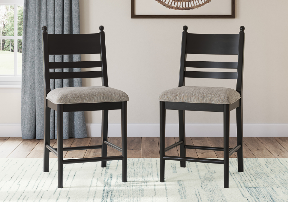 Relaxed living and cozy comfort—that’s what traditional farmhouse design is all about. And what better way to embrace your love of rustic country style than with this counter height bar stool. Celebrating the beauty of simplicity, this stylized ladderback seating marries functionality with classic appeal for a fresh feel. Its comfortably cushioned seat invites you to stay a while. Mix and match with other chairs in the collection for an eclectic look. You’ll want one in every color.