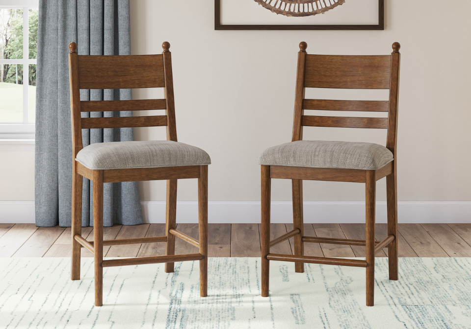 Relaxed living and cozy comfort—that’s what traditional farmhouse design is all about. And what better way to embrace your love of rustic country style than with this counter height bar stool. Celebrating the beauty of simplicity, this stylized ladderback seating marries functionality with classic appeal for a fresh feel. Its comfortably cushioned seat invites you to stay a while. Mix and match with other chairs in the collection for an eclectic look. You’ll want one in every color.