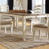 Bon appétite. The Realyn dining room set has all the right ingredients for a French country-inspired feast for the eyes. Drop-in leaf allows you to transform an intimate round dining table into a gracious oval dining table that comfortably seats six. A two-tone finish pairs a highly distressed “chippy white” with a natural oak-tone top for a double serving of charm.