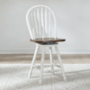 The Carolina Crossing Windsor Swivel Counter Chair brings classic charm and easy comfort to your kitchen or dining space. Crafted of Rubberwood solids in a warm Antique Honey finish, this arrow back Windsor-style chair features a swivel saddle-shaped seat for smooth movement and added comfort. Multi-turned splayed legs flow into a turned footrest, offering both style and support. Thoughtful details like nylon chair glides help protect your flooring, making this timeless counter-height chair as practical as it is inviting.