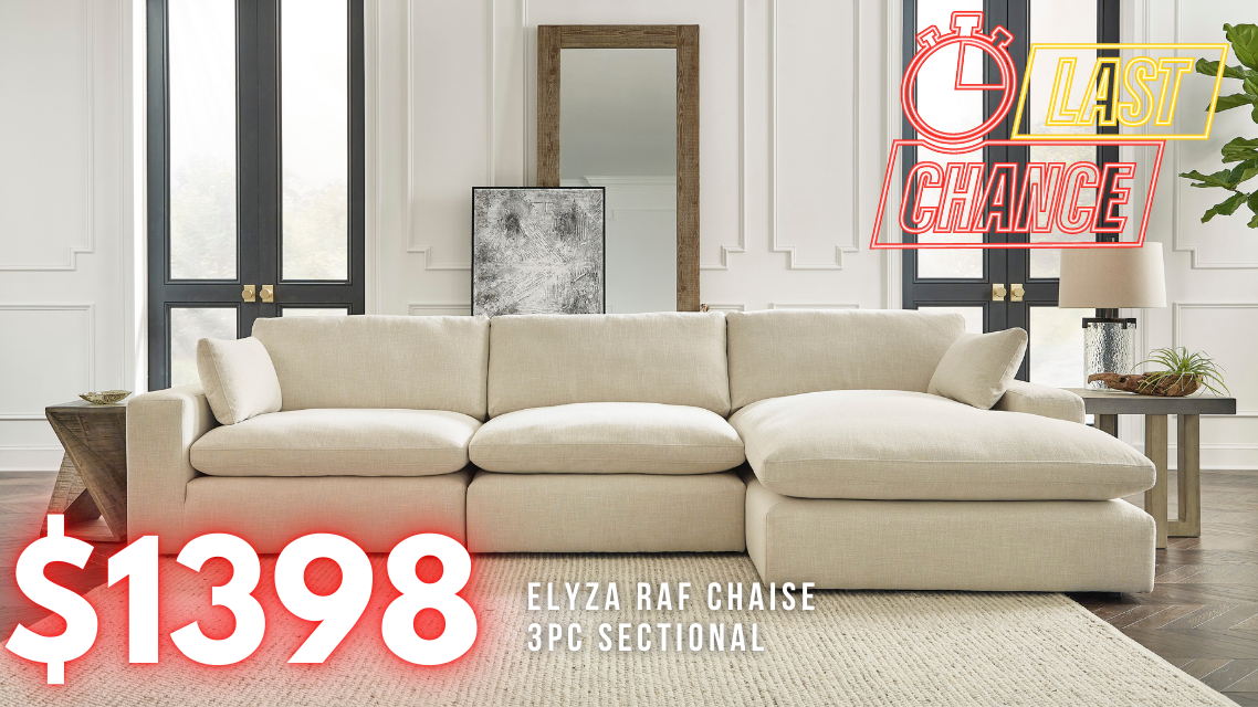 Last Chance Deal! – Elyza Linen 3pc. RAF Chaise Sectional