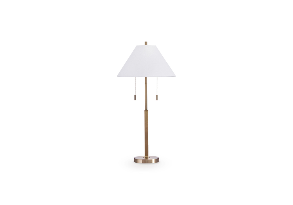 If you’re looking for a contemporary yet timeless aesthetic, you’re sure to find this table lamp’s antiqued gold-tone base delightfully on trend. But wait—with the classic flair of pull chains and a stylish empire shade, there’s a little something for every style. The matching floor lamp (sold separately) is also a bright idea.