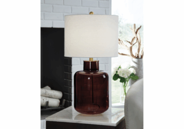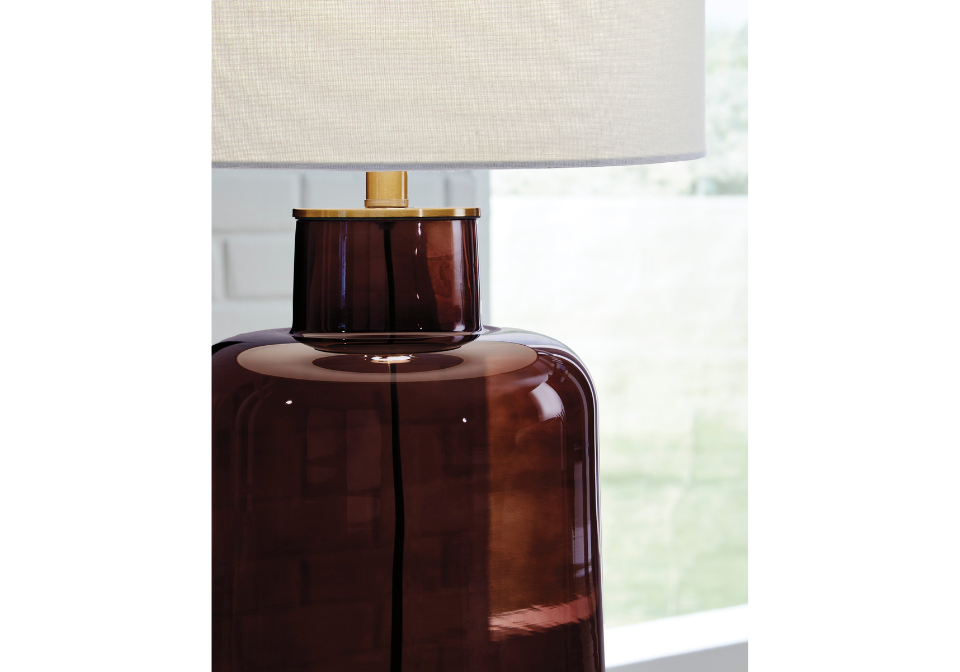 With a classic profile and a deep, warm hue, this table lamp illuminates interiors in cool contemporary style. Crafted with glass, it’s dressed in a brown finish that lends must-have modern versatility. Goldtone finished metal accents round out the details.