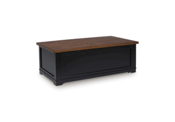 - Top with butcher block veneer pattern in rich brown wood-tone finish
