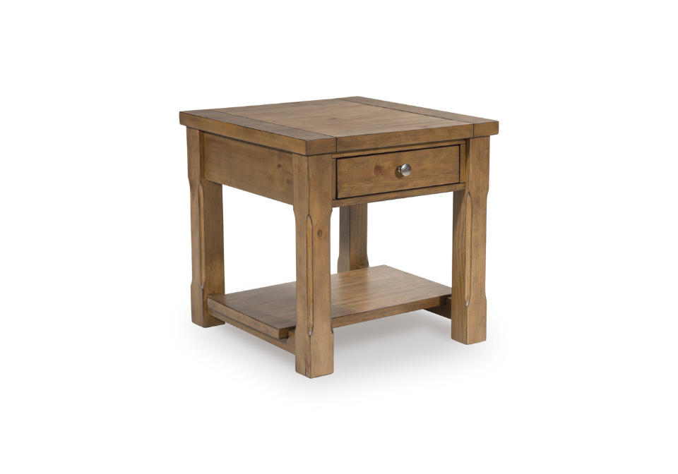 The timeless styling of this end table is well-suited to casual and farmhouse-inspired spaces. Its versatile burnished brown finish seamlessly pairs with neutrals and muted tones alike. With drawers for sofa-side storage and a bottom shelf for displaying decor, this chic table beautifully suits everyday living.