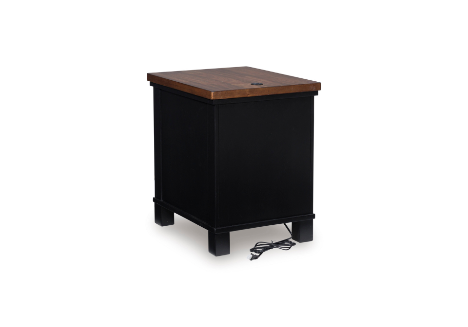 - Top with butcher block veneer pattern in rich brown wood tone finish