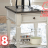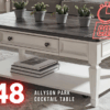 Accent your living space with the Allyson Park chair side table. Crafted of pine and rubberwood solids with cathedral white oak tops, this piece features a wire brushed white finish with a charcoal top, planked top, and is anchored by a square turned pedestal base with flared out feet. This table is perfect for creating a classic look while maintaining a casual feel.