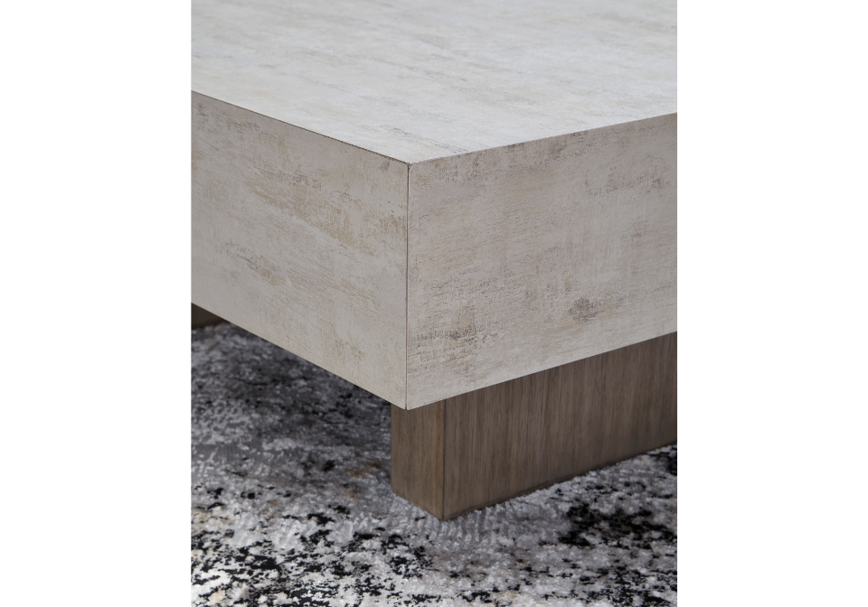 This coffee table is proof positive that sleek, contemporary styling can suit busy lifestyles. Its substantial cement-look top is perched on a textural gray base for an elevated mixed-material look. Don’t want to sacrifice function for fashionable flair? The table’s MEGA-TUFF® melamine provides must-have durability and cleanability, resisting stains, scratches, heat and water.