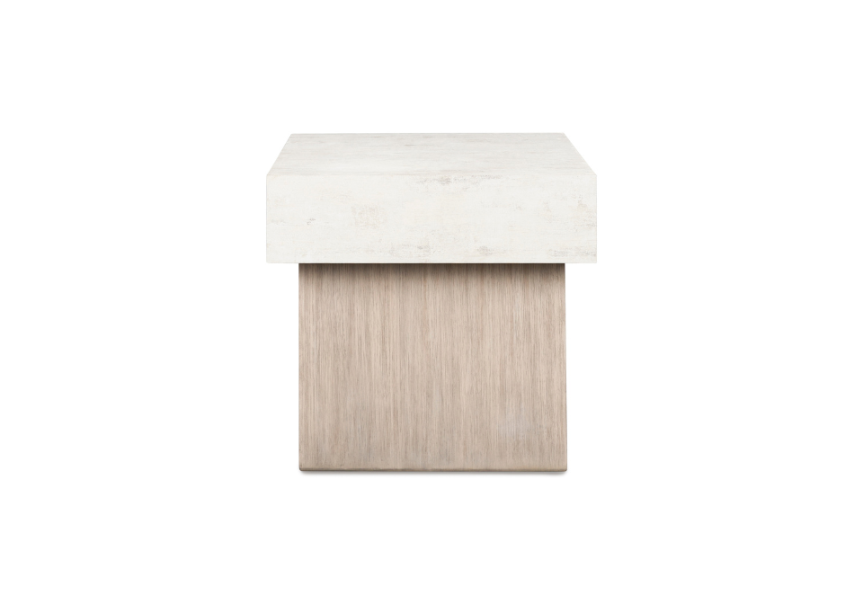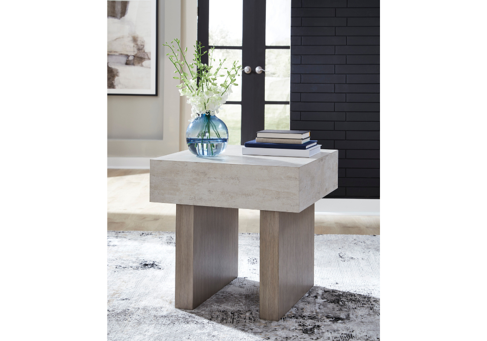 - Tabletop with light gray faux cement melamine laminate