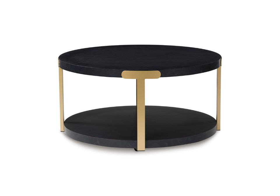 - Metal legs with durable goldtone powder coat finish