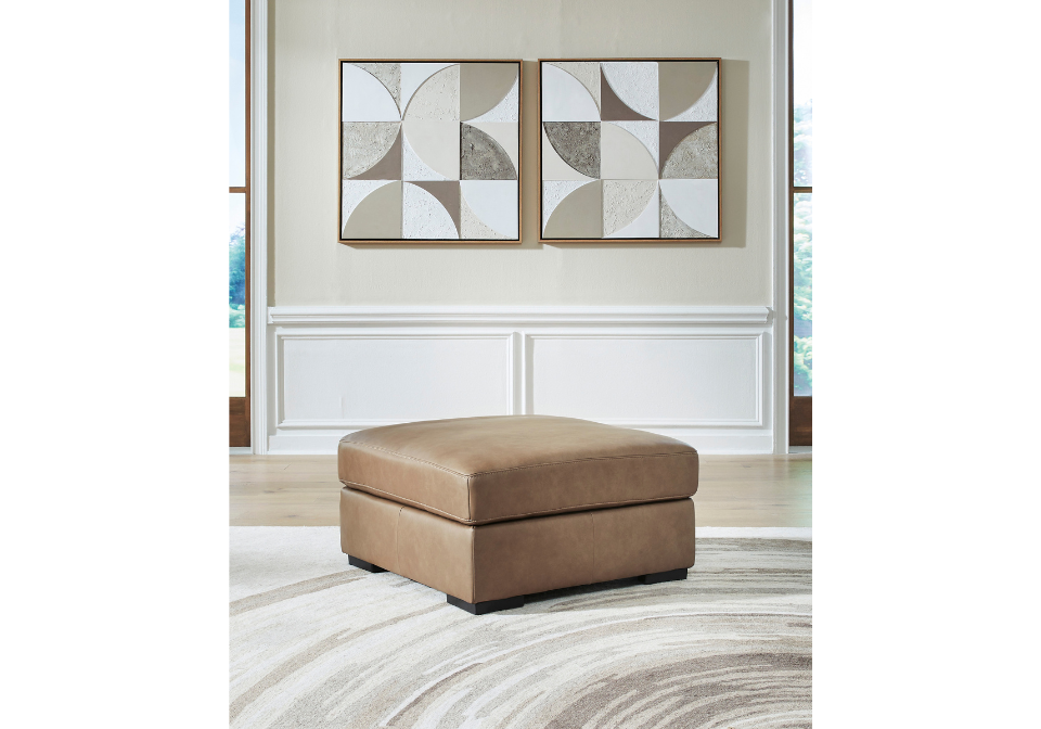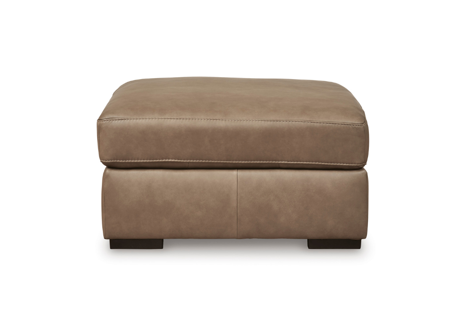 - 100% top grain leather covers the cushion top; skillfully matched faux leather covers the remaining areas