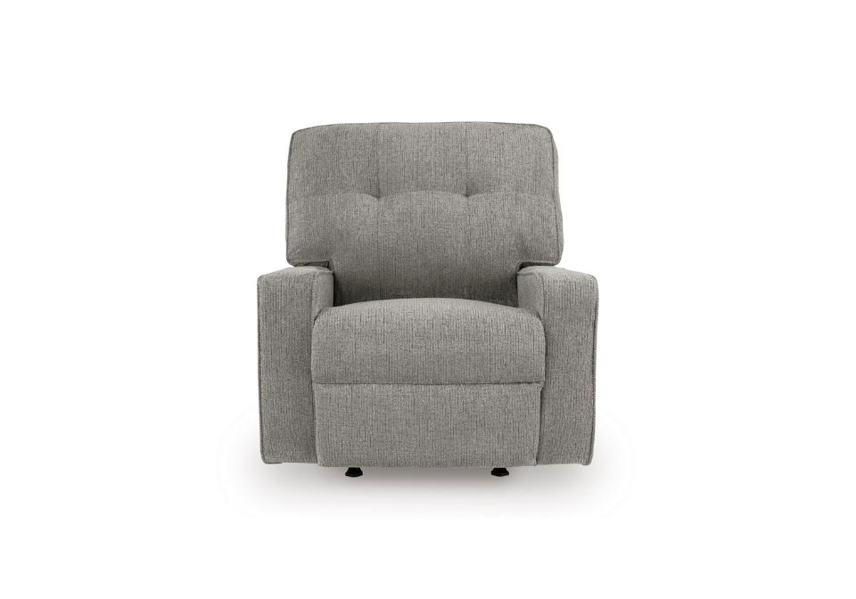 Sincere in its styling, this Larimer Iron Rocker recliner marries classic function with modern design elements for truly transitional appeal. Its track arms lend a contemporary vibe, while easy pull tab reclining ups the comfort level. And with the recliner’s goes-with-anything neutral upholstery, styling is made simple. All that’s left for you to do is sit back and relax.