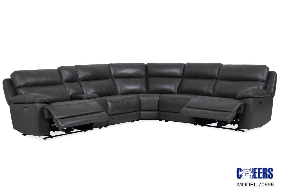 The Madrid Granite 6-Piece Power Reclining Sectional combines modern luxury with everyday comfort. Upholstered in genuine leather, it offers a rich feel and lasting durability, while smooth power recline lets you relax at the touch of a button. The Madrid sectional is designed for convenience and style in every seat.
