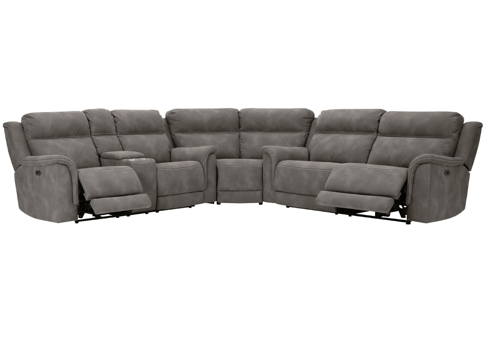 - Includes 3 pieces: power reclining loveseat, power reclining sofa, and wedge