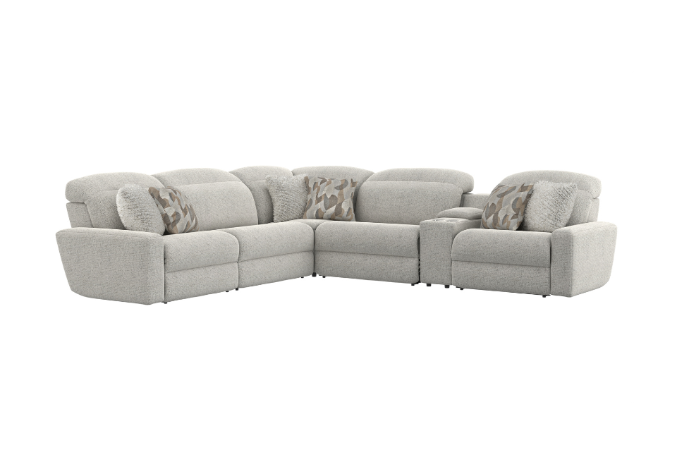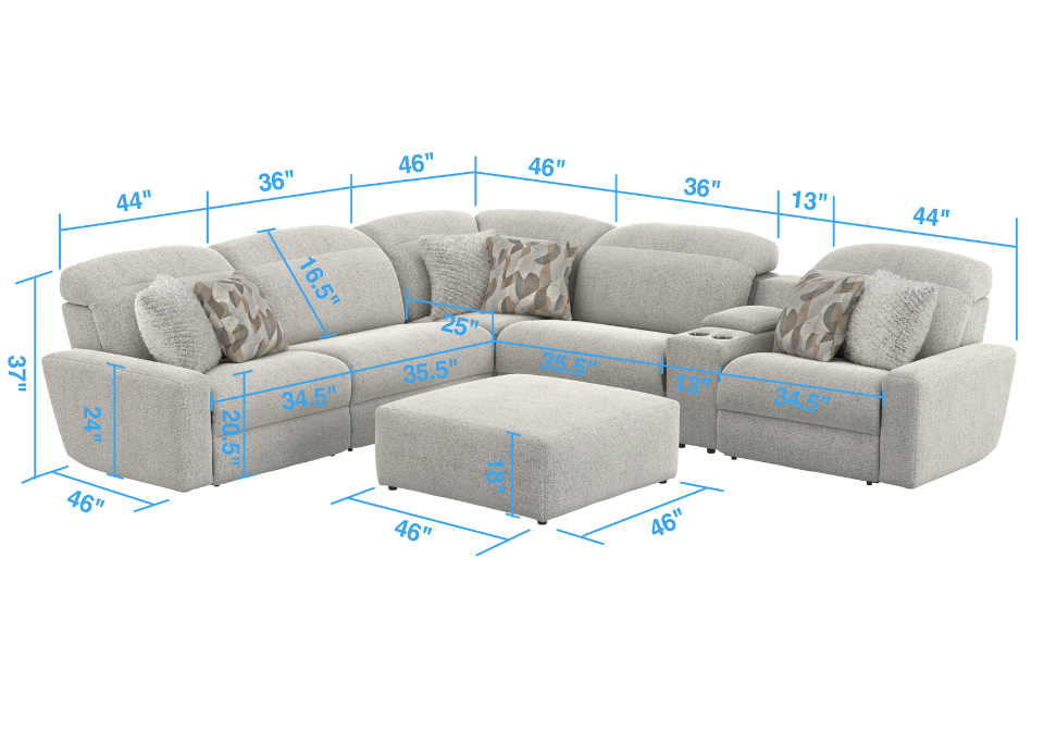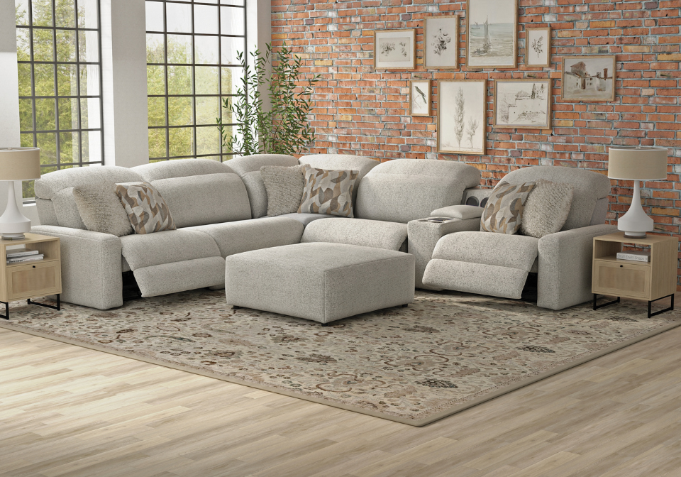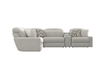 The Terrence Sectional brings sleek design and high-end comfort together in one versatile package. Upholstered in soft multi-color chenille fabric, it offers a cozy, inviting feel, while comfort coil seating with Comfor-Gel provides cool, body-cradling support. A built-in comfort control panel with USB charging keeps devices powered, while the console with storage and cupholders adds everyday convenience. Backed by a sturdy steel seat box, the Terrence is as durable as it is stylish.