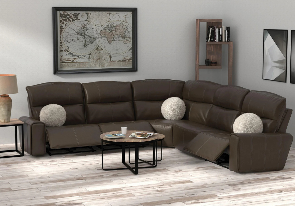 The Jackson Tramonti Chocolate 5-Piece Sectional redefines modern comfort with its sophisticated design and plush seating. Upholstered in a rich chocolate-colored leather, this sectional features a sleek design that complements its modern aesthetic