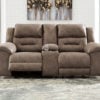 For those that love the cool look of leather but long for the warm feel of fabric, this power reclining sofa set delivers both with ease. Its high-performance padded faux leather is remarkably durable and easy to clean, just the thing for family spaces. When it’s time to relax, the one-touch power control puts the perfect position at your fingertips. Channel-stitched back cushions provide indulgent lumbar support for maximum seating comfort—not to mention fashion-forward flair.