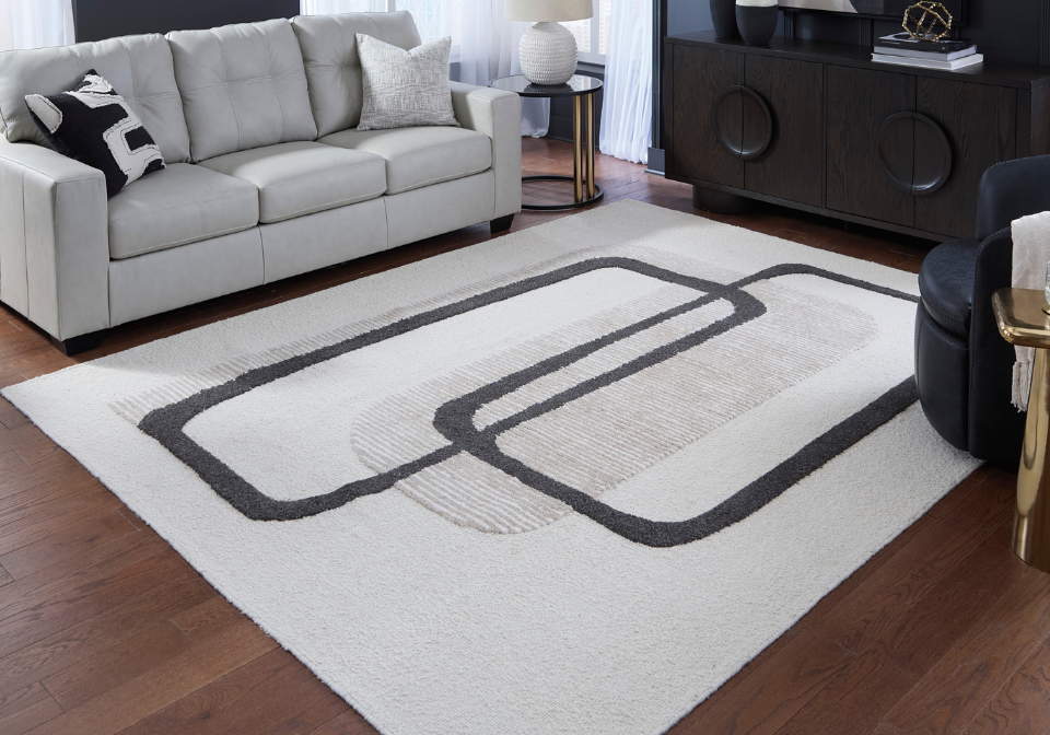 Wow with contemporary cool character. This divine hand tufted area rug delights with an abstract design in ivory, taupe and charcoal, making it a tasteful choice for so many spaces. It’s balanced sophistication at its finest.
