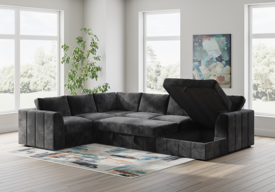 - Built-in storage in chaise