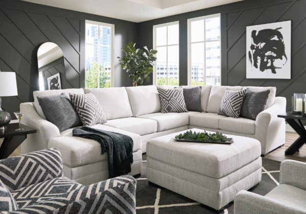- Includes 3 pieces: left-arm facing corner chaise, armless loveseat, and right-arm facing sofa with corner wedge