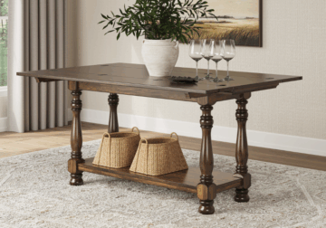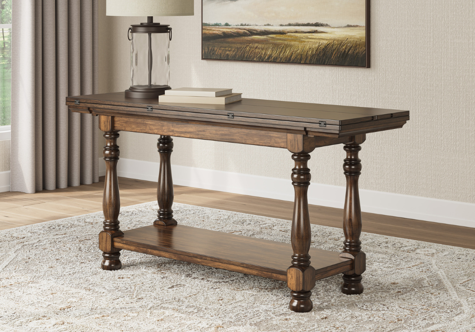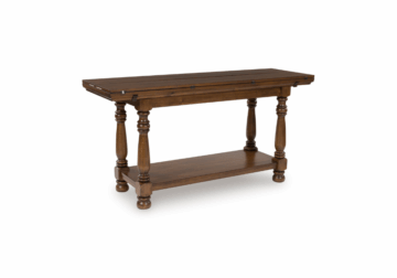 Traditional style doesn’t have to be stuffy. It can feel warm, inviting and beautifully in the moment. Case in point: this flip-top sofa table. Showcasing uniquely detailed leg posts, it has an allure all its own. Equally special is the rich brown finish, which exudes a mood of timeless charm. And when you need an extra dining space, simply fold open the table’s hinged panels. How’s that for relaxed refinement?