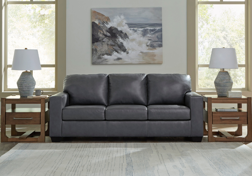 - 100% top grain leather covers inside areas such as the back, seat and arm cushions; skillfully matched faux leather covers the remaining areas