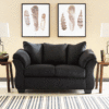 Talk about fine lines and great curves. That’s the beauty of the Darcy sofa—made to suit your appreciation for clean, contemporary style. A striking flared frame, comfy pillow top armrests and an ultra-soft upholstery that holds up to everyday living complete this fashion statement. Featured in a medium black upholstery.