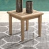 Discover a high style alternative to traditional outdoor furniture. With its antiqued teak-like finish, this solid wood coffee table definitely has the corner on style. Better yet, it has the edge when it comes to affordability. For that much more weather protection, the table’s eucalyptus wood frame with slat styling is treated to a 5-step finishing process.