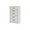 - Antiqued white finish with grain texture